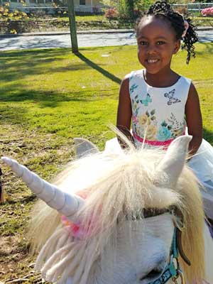 We Bring Pony Birthday Parties for Boys and Girls in Houston We bring our beautiful and gentle ponies right to your home. We give special attention to the birthday child and siblings, but all the children attending the party will get to ride and pet the ponies too. We offer ONE-PONY party packages. You can choose either a Princess or Western theme at no extra cost. You can also add a magical Unicorn Theme for a very minimal fee! We include a cute petting zoo with two adorable bunnies with all pony parties. Having extra activities for the children to enjoy while not riding is always a plus. | ||||||
